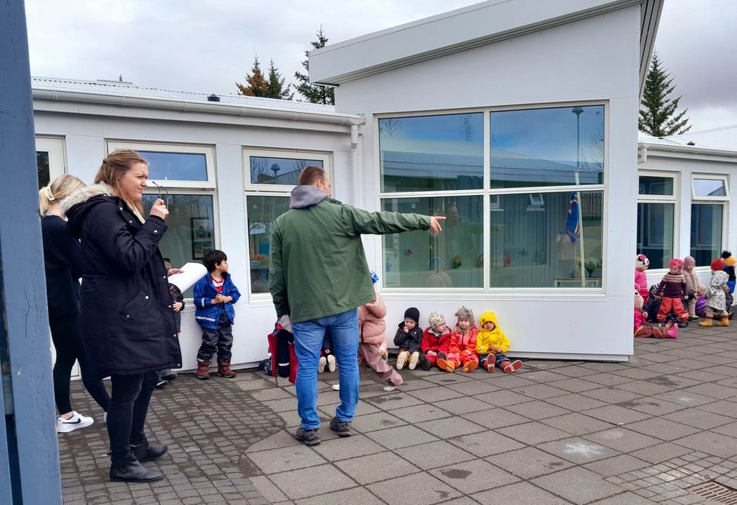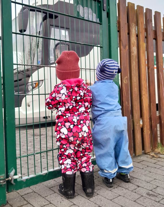 Á sama tíma og söngæfingin hófst lögðu elstu börnin af stað í rútu ásamt jafnöldrum frá Kópahvoli. Þau ætla í Hörpuna og hlýða á Sinfóníuhljómsveit Íslands spila fyrir fullum sal. Það er alltaf gaman að bregða sér af bæ - einkum þegar við fáum svona frábært heimboð - takk kærlega fyrir.