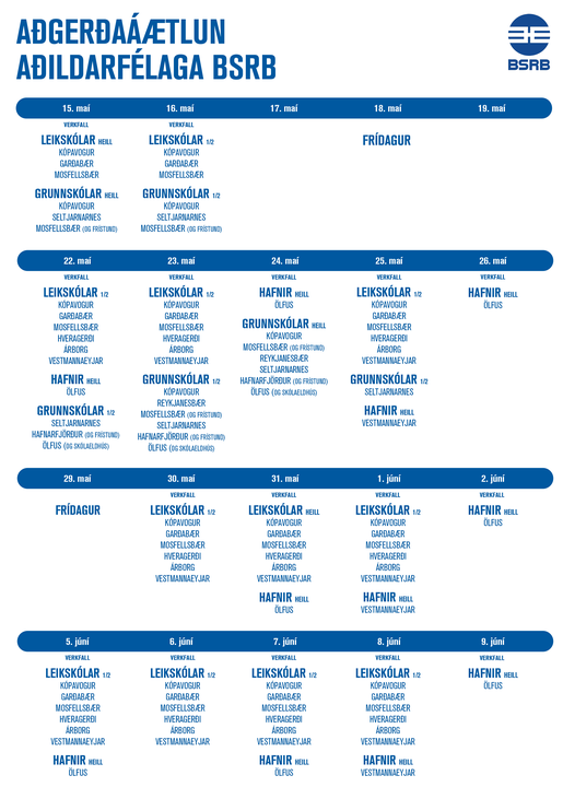 Við erum að vinna í mætingar-skipulagi fyrir dagana sem framundan og mun það verða sent til foreldra síðar í dag. Vonum við öll að samningar takist sem fyrst og samstarfsfélagar okkar fái laun í samræmi við ábyrgð starfsins svo leikfélagar geti verið saman allan daginn og nauðsynleg rútína haldist í lífi barnanna og skólastarfið sé í sínum vanalega rythma.